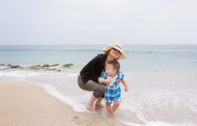 結果母子倆的腳都濕了,所以就乾脆多玩一會兒!! (在海邊整理那些進沙的鞋子,真的很麻煩) |